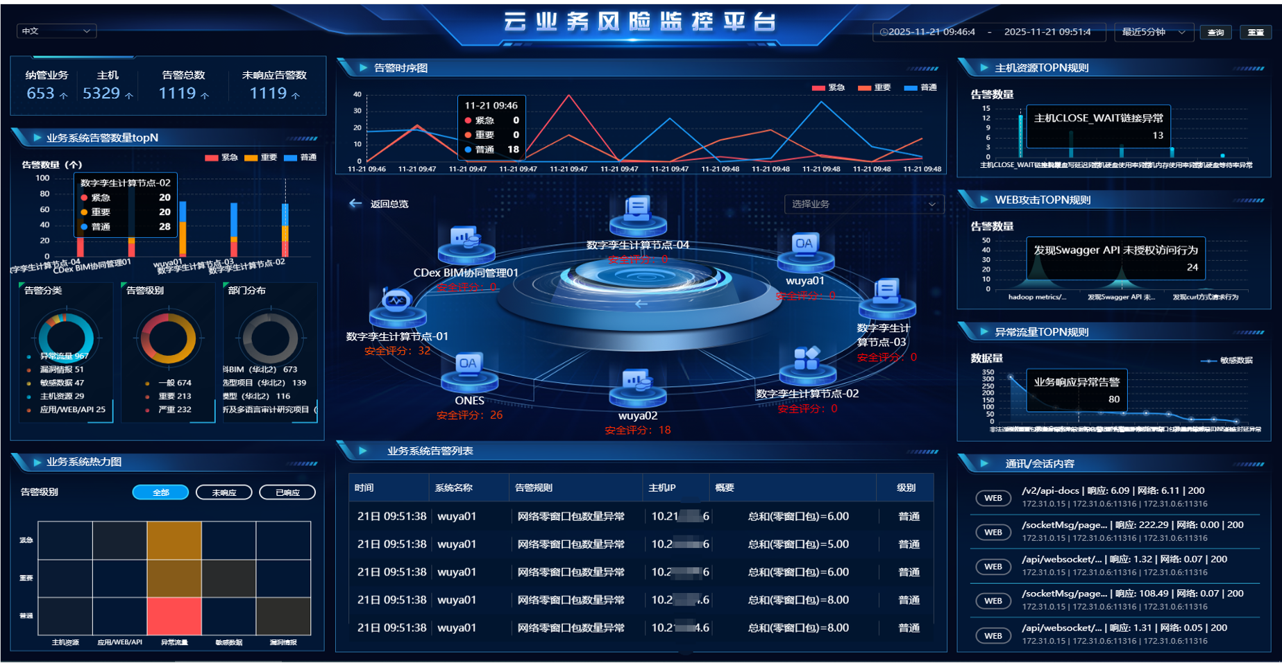 XX集团作为国内规模最大的建设集团之一,业务覆盖建筑施工、基础设施投资、设计咨询等多个领域,具有分支机构多、项目分布广、IT架构复杂的特点。随着数字化转型推进,集团面临以下核心挑战:- 业务系统分散:核心业务系统(如项目管理、财务ERP、供应链平台等)部署在多地数据中心及云端,传统监控工具存在“数据孤岛”,难以实现跨平台统一观测;